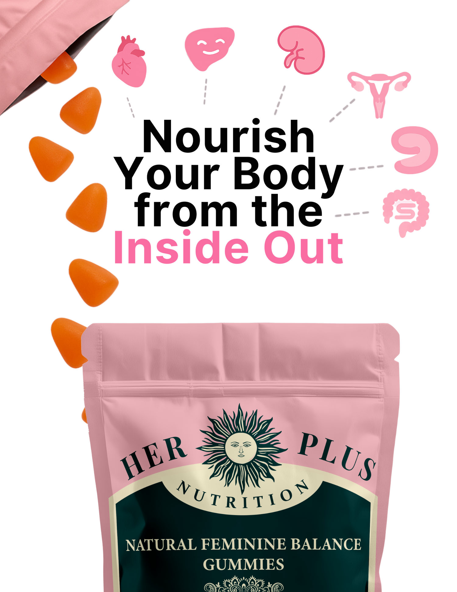 Her+ targets the root cause with probiotics and nutrients to restore balance and support healthyvaginal flora. Say goodbye to odor, discomfort, and overthinking-hello to fresh, clean confidenceevery day